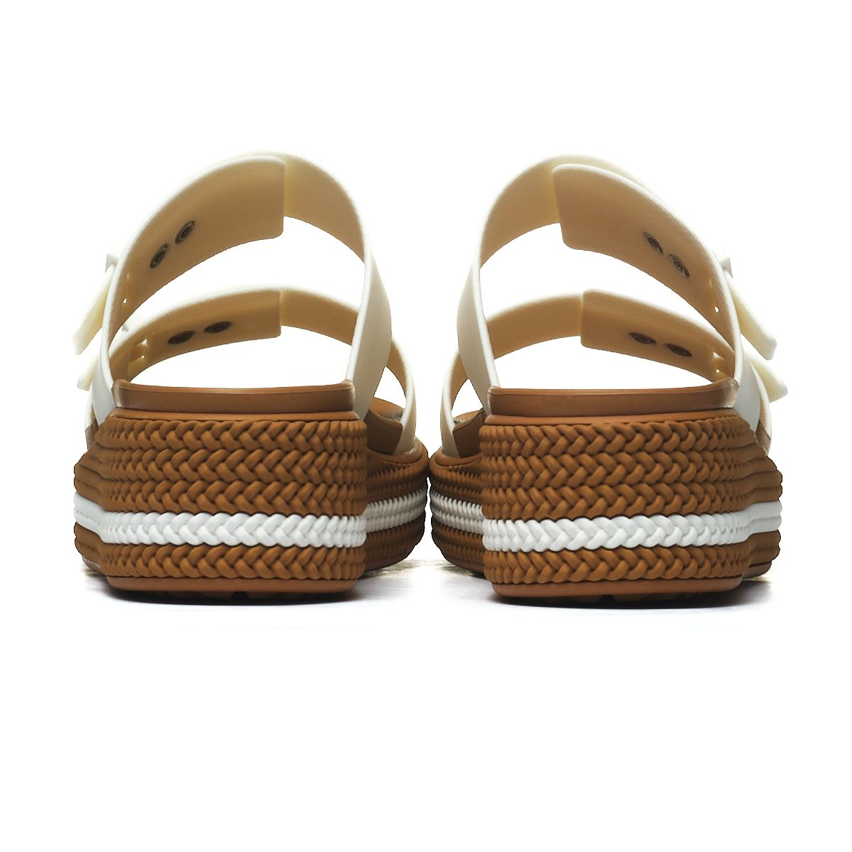 Sandały Crocs Brooklyn Woven Buckle 209978-0WV w kolorze białym to doskonały wybór na sezon FA25. Wykonane z lekkiej pianki, gwarantują komfort noszenia przez cały dzień, a ich elastyczność sprawia, że idealnie dopasowują się do stopy. Wbudowany zamek błyskawiczny oraz pleciona cholewka nie tylko nadają im stylowy wygląd, ale także zwiększają stabilność podczas chodzenia. Dodatkowo, materiał odprowadza wilgoć, co zapewnia uczucie świeżości nawet w cieplejsze dni. Sandały te łatwo utrzymać w czystości, co czyni je praktycznym wyborem na letnie wyjścia. Zainwestuj w wygodę i modny design już dziś!