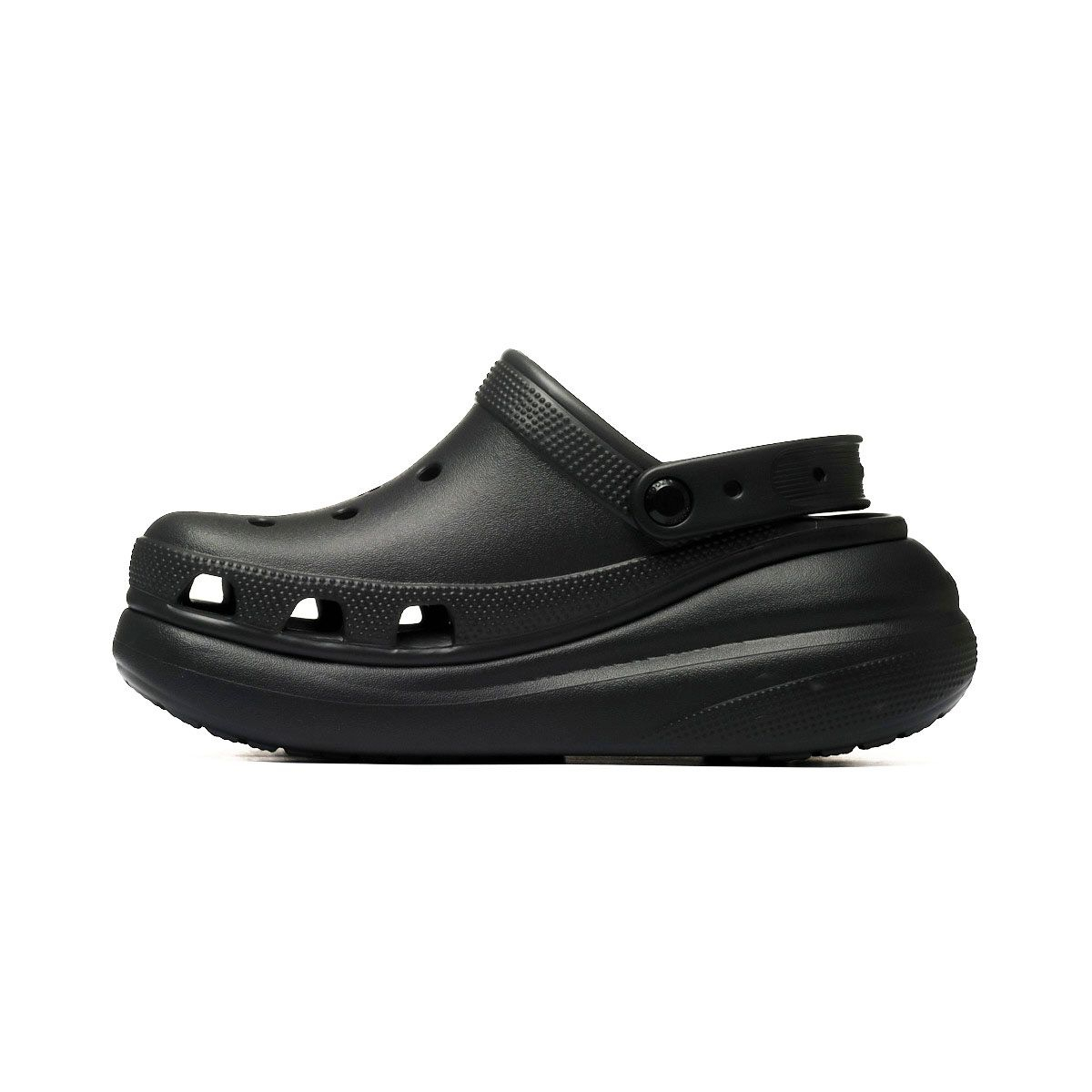Crocs Classic Crush Clog 207521-001 to klapki, które łączą wygodę z nowoczesnym stylem. Wykonane z lekkiej pianki, zapewniają doskonałą amortyzację, co wpływa na komfort noszenia przez cały dzień. Czarny kolor sprawia, że te klapki łatwo dopasować do różnych stylizacji, zarówno na plaży, jak i w miejskich warunkach. Otwory wentylacyjne wierzchniej części umożliwiają cyrkulację powietrza, co zmniejsza ryzyko przegrzania stóp. Dzięki elastycznej konstrukcji, Classic Crush Clog łatwo zakłada się i zdejmuje, co czyni je idealnym wyborem do codziennych aktywności.